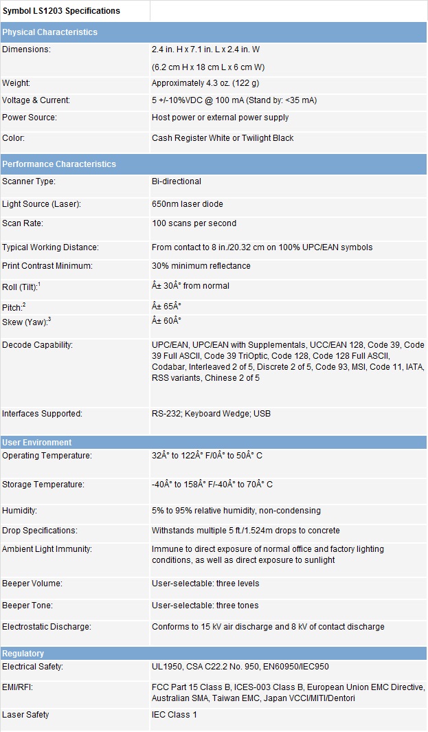 Motorola Symbol Ls1203 Bar Code Reader - Handheld Bar Symbol Ls1203 (รวมขาตั้ง)